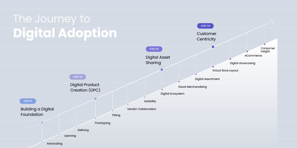As with any transformation process, change must be adopted from an organization’s core to be effective and sustainable. It’s not as simple as downloading 3D clothing design software, apparel companies must undergo an end-to-end transformation, embedding a digital culture throughout the entire organization, from the stakeholder to the consumer level.