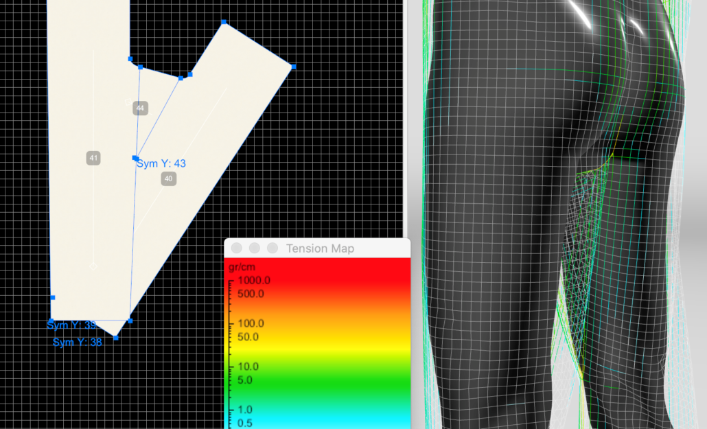 Switching directions of the asymmetrical gusset allowed Nick to make swift changes in VStitcher and then make comparisons of the pattern pieces on the avatar’s body. Nick was able to determine which option gave the best fit without having to adjust or create a physical sample.