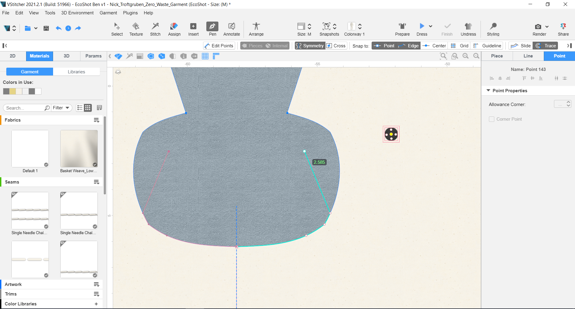 Throughout his design process, Nick defined the features in VStitcher that he found crucial in conducting a design workflow with minimal waste, these include: