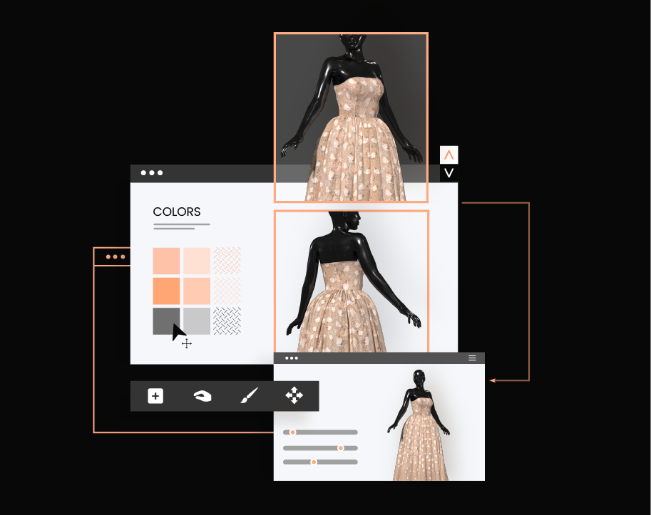 The collection for this project was made up of two Balenciaga dresses as well as one Christian Dior dress. Tetsuo kicked off the design process by examining the details of the garments, before moving on to pattern drafting. Once he felt confident about the design, he created the patterns in 3D, perfected the draping, and finally simulated the garments.