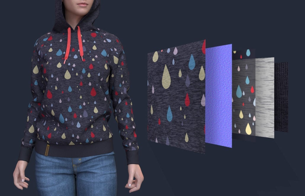 For merchandising, the multi-layered material feature helps you achieve more realistic results by layering on top of normal maps and specular maps. With the Overlay and Multiply modes, you can control the transparency of each layer and the way the layers blend.