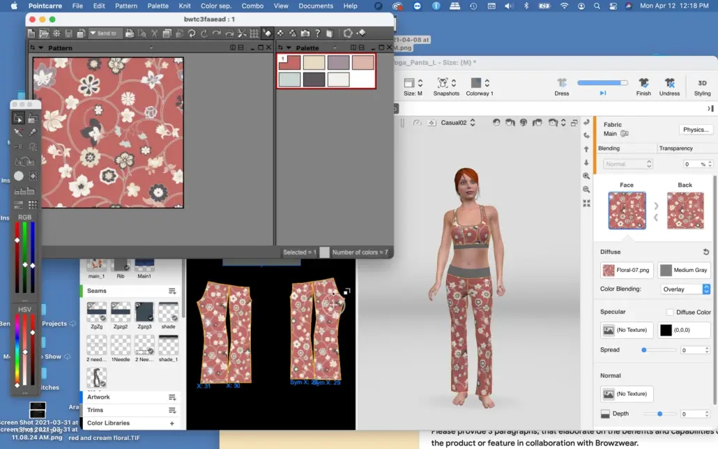 Pointcarre ProDesign software is used for the creation and development of almost any textile design & repeat. Print, knit and woven designs can all be created from your ideas and designs, developed from a scan or other digital image, edit colors, edit the design, work in repeat, work in Layers, easily match colors to Pantone® Textile & CSI color Libraries. Save or export the file as a TIFF, TGA, BMP, PSD, PNG, and JPEG. Production info can also be generated to send to the mill. Pointcarre is native on Mac and PC, so any computer you already have will work fine with it. Currently Pointcarre Pro Design is the chosen software of designers for Tommy Hilfiger, Ralph Lauren, Michael Kors & Martha Stewart Living as well as Volkswagen, Johnson Automotive, Sailrite and more. Many clients are in the apparel, home, automotive and wallpaper industries.