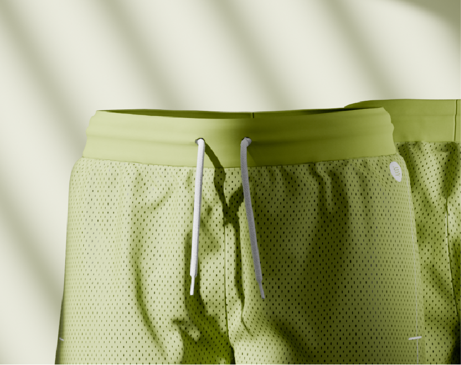 Stitch the top and bottom edges of the drawcord to the internal lines on the waistband. Pay attention to the stitch length to ensure alignment with eyelets. Dress the waistband first and then the drawcord, using Focus styling to pull the drawcord through eyelets.